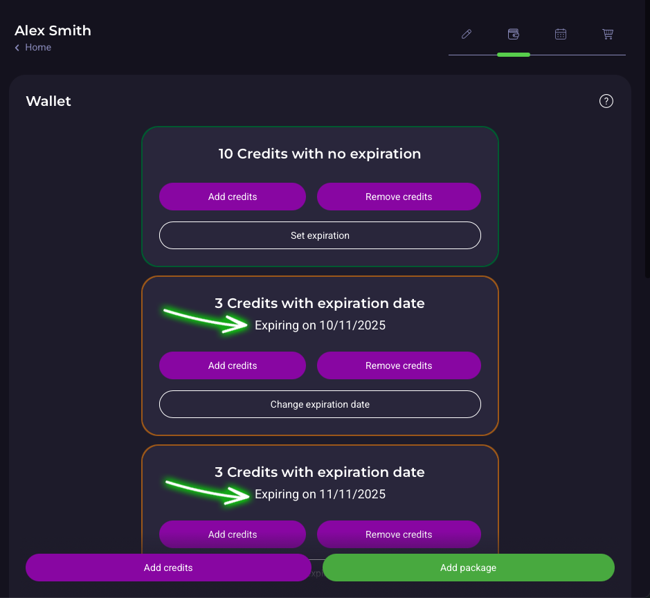 Puoi poi creare pacchetti di crediti con una scadenza prestabilita.