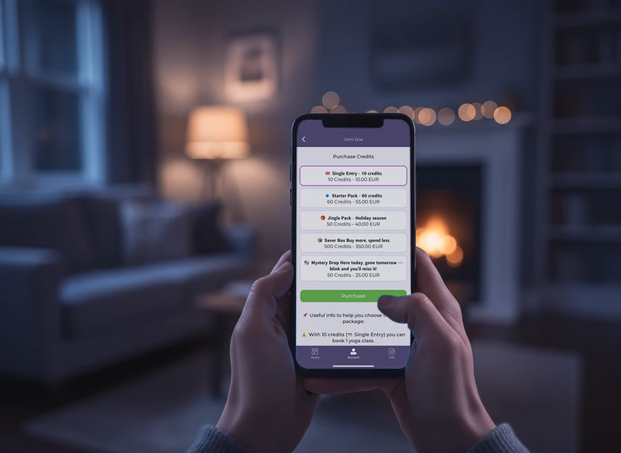 Con i pagamenti in-App i tuoi clienti acquistano i pacchetti direttamente dall’app, in completa autonomia.